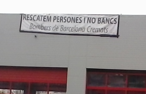 MICROFOTO. Los bomberos de Barcelona están quemados. Luchan contra los recortes en las políticas sociales y contra los desahucios. Y así lo evidencian: «Rescatem persones i no bancs».