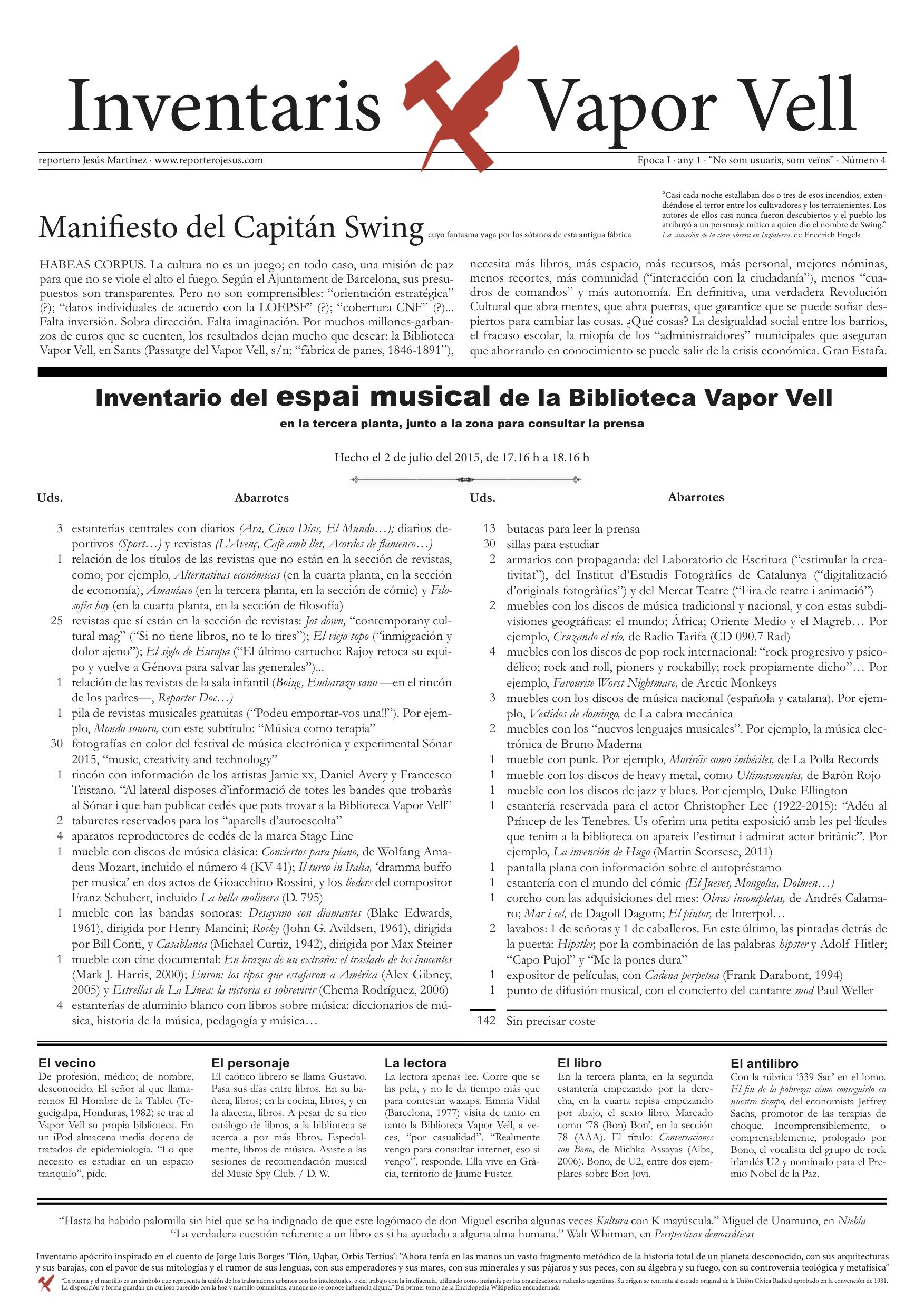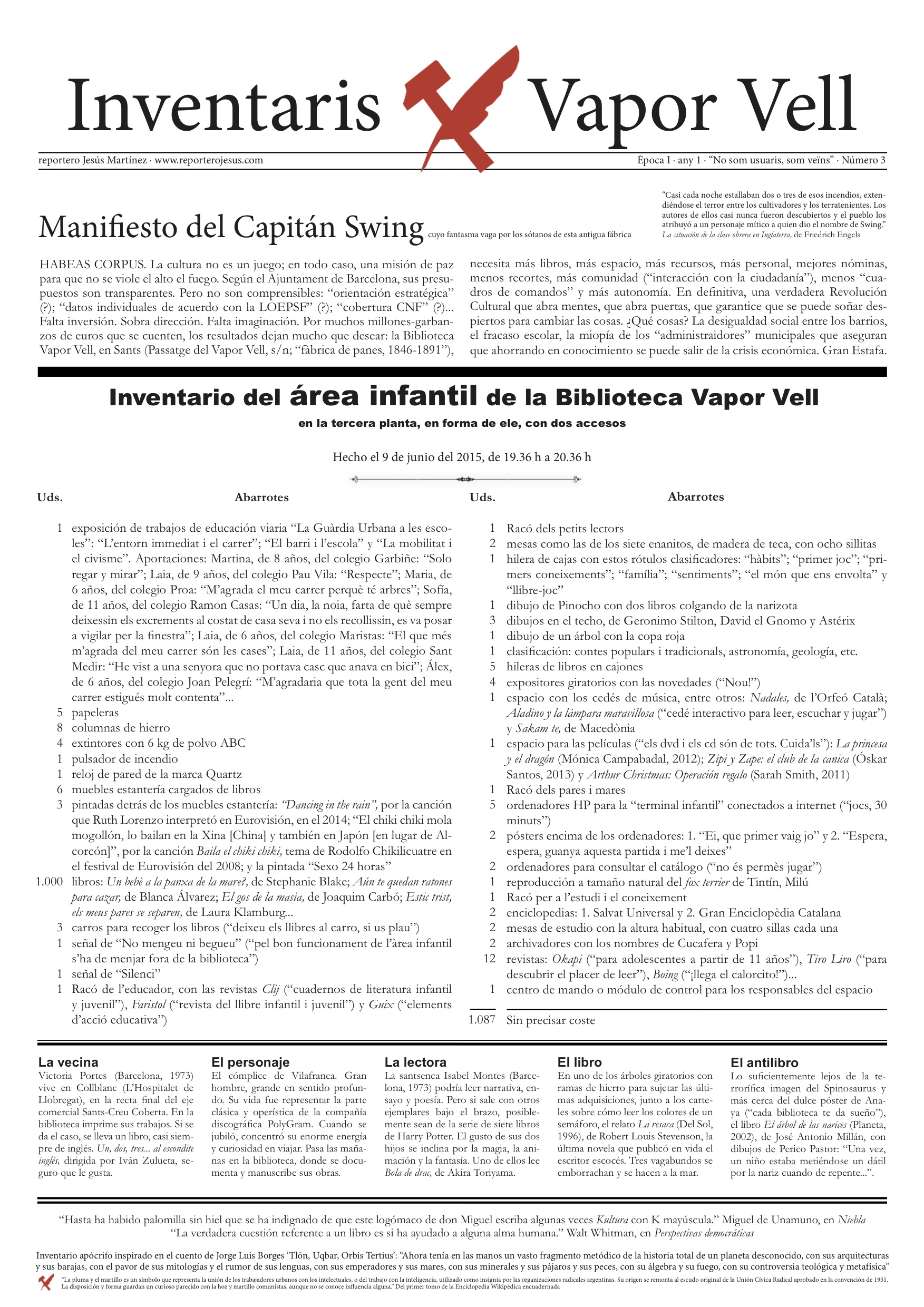 INVENTARIOS DE LA BIBLIOTECA VAPOR VELL. La Biblioteca Vapor Vell, en Sants, es uno de los laboratorios de cultura urbana más adelantados de Barcelona.